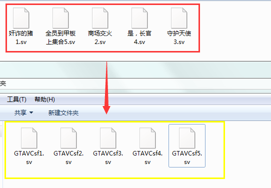 注意:GTAVCsf1名称里的1可以是2,3,4,5,6,7,8。因为游戏里有八个存档,改啥名存档将出现在对应位置。